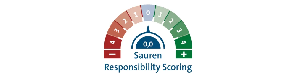 Mit dem Sauren Responsibility Scoring werden die qualitativen Erkenntnisse der Analysen in den Bereichen Umwelt , Soziales und Unternehmensführung systematisch in Werte übersetzt. Das Sauren Responsibility Scoring umfasst eine Skala mit Werten von -4 bis +4. Je stärker der Entscheidungsprozess von den Aspekten aus den Bereichen Umwelt, Soziales und gute Unternehmensführung geprägt ist, desto höher ist in der Regel der Wert. Die Analyse und Bewertung der wichtigsten nachteiligen Auswirkungen auf Nachhaltigkeitsfaktoren ist Teil des Bewertungsprozesses.