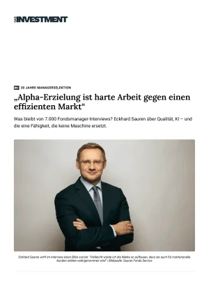 Beim €uro Fund Award 2019 konnte der Sauren Select Global Growth Focus in der Kategorie "Dachfonds nur Aktienfonds" den zweiten Platz über einen Zeitraum über 10 Jahre für sich verbuchen, während der Sauren Global Growth A in dieser Kategorie sogar das Siegerpodest im Zeitraum über 10 Jahre erklimmen konnte.