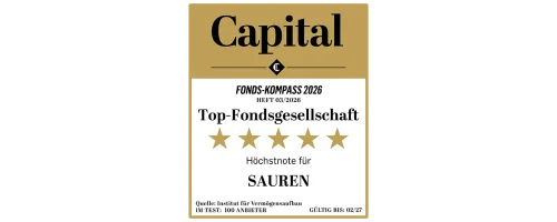 - Auszeichnung "Top-Fondsgesellschaft"Sauren erhält Höchstnote bei Capital Fonds-Kompass 2026"Top-Fondsgesellschaft"