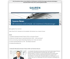 - Die Sauren News bieten umfangreiche Informationen rund um das Unternehmen und die Sauren Dachfonds. Bei Interesse an regelmäßigen Informationen aus dem Haus Sauren laden wir Sie ein, sich für unseren Newsletter anzumelden. - Der Newsletter wird 1x monatlich für Vertriebspartner erstellt. Dort wird auch das jeweils aktuelle Datum für den nächsten "Sauren Dialog" bekannt gegeben, der Vertriebspartnern einen direkten Draht zum Portfoliomanagement bietet.